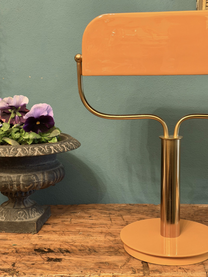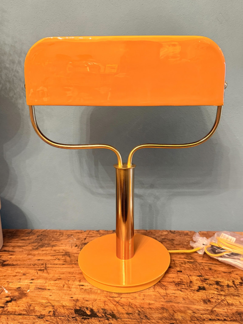 Lineare, geometrica e incredibilmente chic. Questa lampada reinterpreta il concetto della classica lampada ministeriale in chiave moderna, puntando su un contrasto cromatico tra l’ottone lucido e la calda tonalità ocra.