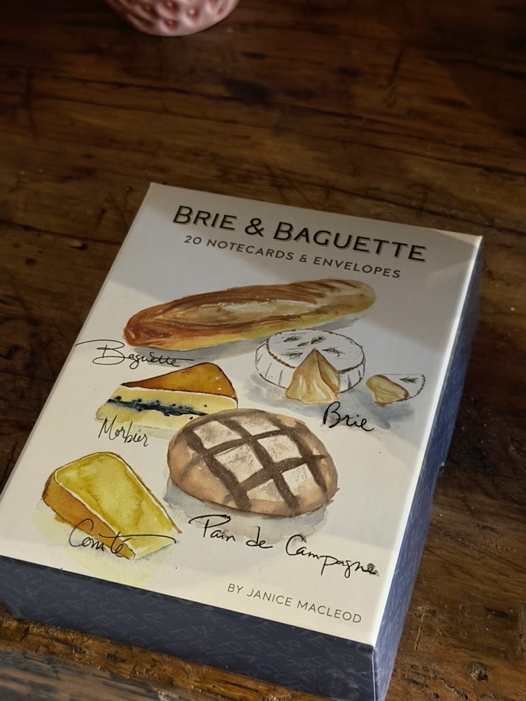 Porta un tocco di eleganza francese sulla tua scrivania con il set di biglietti d’auguri “Brie & Baguette”, illustrato dalla artista e autrice Janice MacLeod. Ogni biglietto è un piccolo capolavoro all’acquerello che celebra i piaceri più iconici della Ville Lumière.