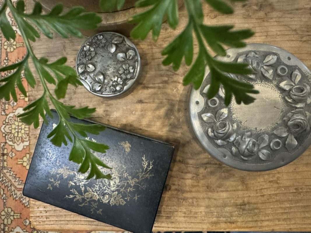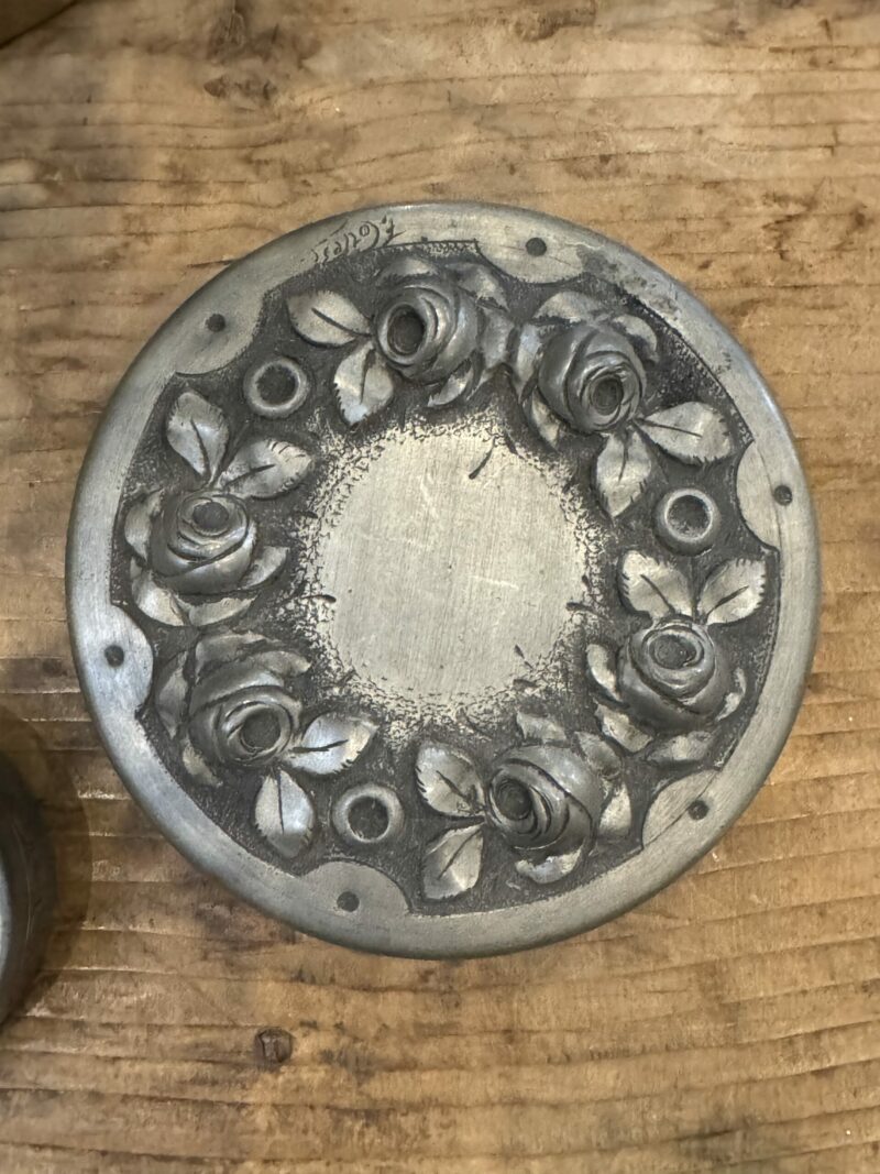 Un delicato e elegante oggetto in peltro, presenta un decoro liberty finemente realizzato a sbalzo, epoca inizio XX secolo.