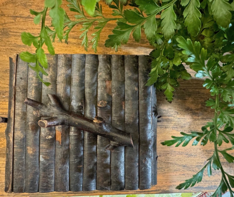 •L’oggetto è realizzato con tronchi di legno tagliati e assemblati per imitare una catasta di legna.