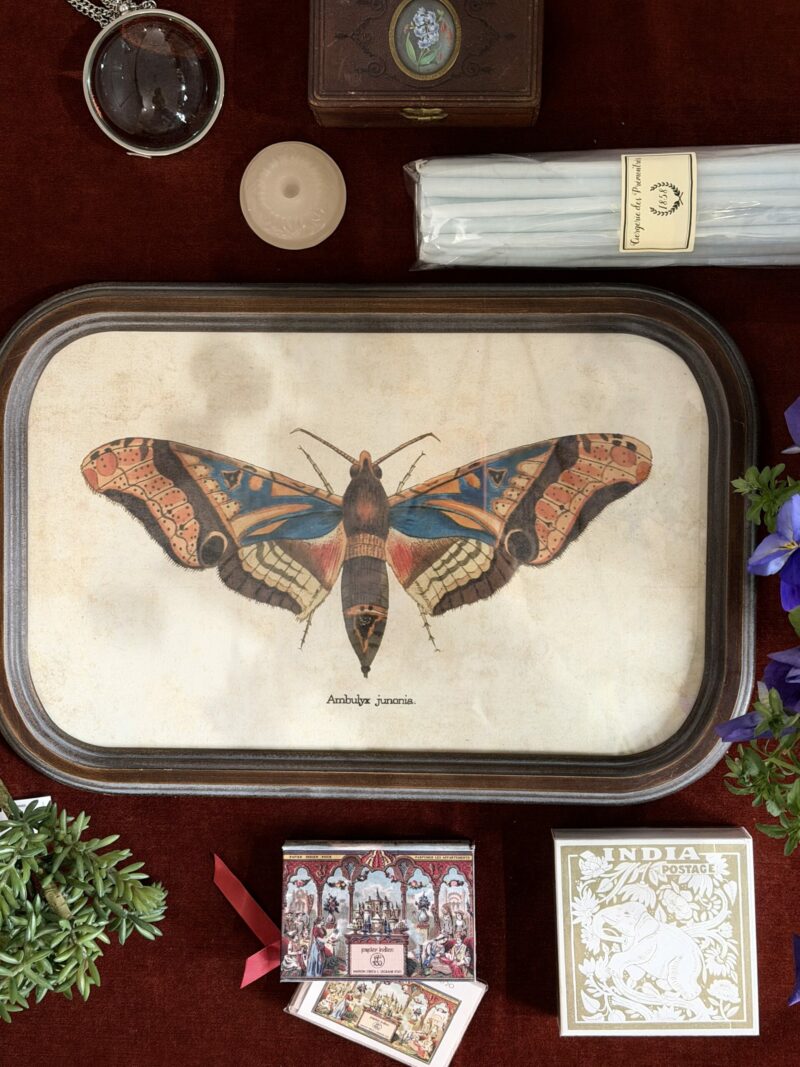 Perfetto per chi ama lo stile Cabinet of Curiosities (Wunderkammer), questo pezzo d’arredamento unisce il fascino della scienza antica a un design decorativo sofisticato.Soggetto: Illustrazione scientifica dettagliata della falena Ambulyx junonia.